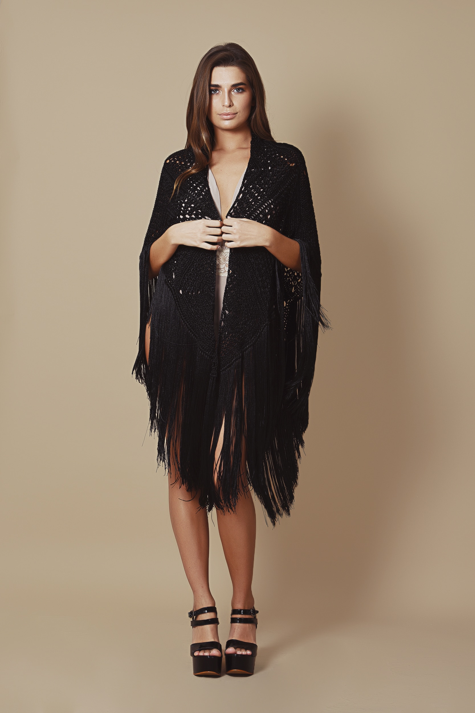 Our Niza Shawl is a stunning example of authentic hand-craftsmanship, imagined with a luxe bohemian feel. Hand-knitted from the finest natural silk yarn in a crochet style, the classic diamond motif is perfectly finished with a stunning hand-placed fringe trim; a truly luxurious take on an artisanal technique.